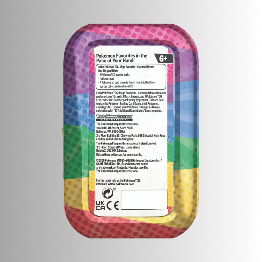 The Pokémon TCG: Mega Evolution - Ascended Heroes Mini Tin delivers a compact, fan-friendly entry into the new set with booster packs, exclusive art, and collectible extras. It’s ideal for casual collectors, gift buyers, or anyone wanting a quick taste of the set without committing to a full box.